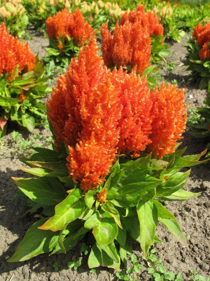 Celosia can be annuals, perennials or shrubs, with simple or lobed, alternate leaves and tiny, brightly coloured flowers in large, plume-like inflorescences. Many garden selections are closely related to C. argentea