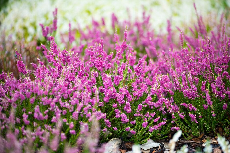 Calluna are low-growing or dwarf evergreen shrubs with stems clothed in tiny overlapping leaves, and terminal, spike-like racemes of small, 4-petalled flowers with coloured calyces