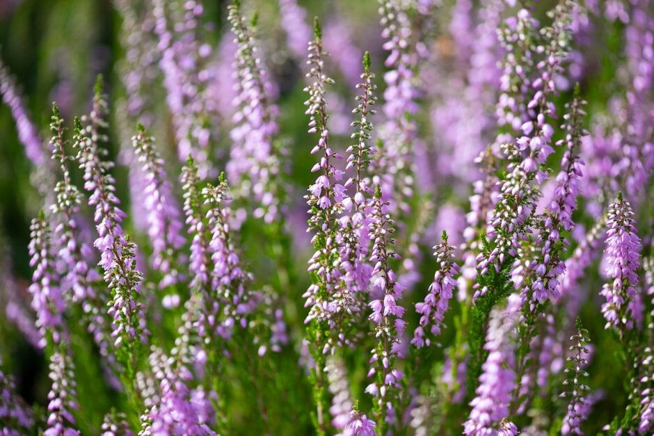 Calluna are low-growing or dwarf evergreen shrubs with stems clothed in tiny overlapping leaves, and terminal, spike-like racemes of small, 4-petalled flowers with coloured calyces