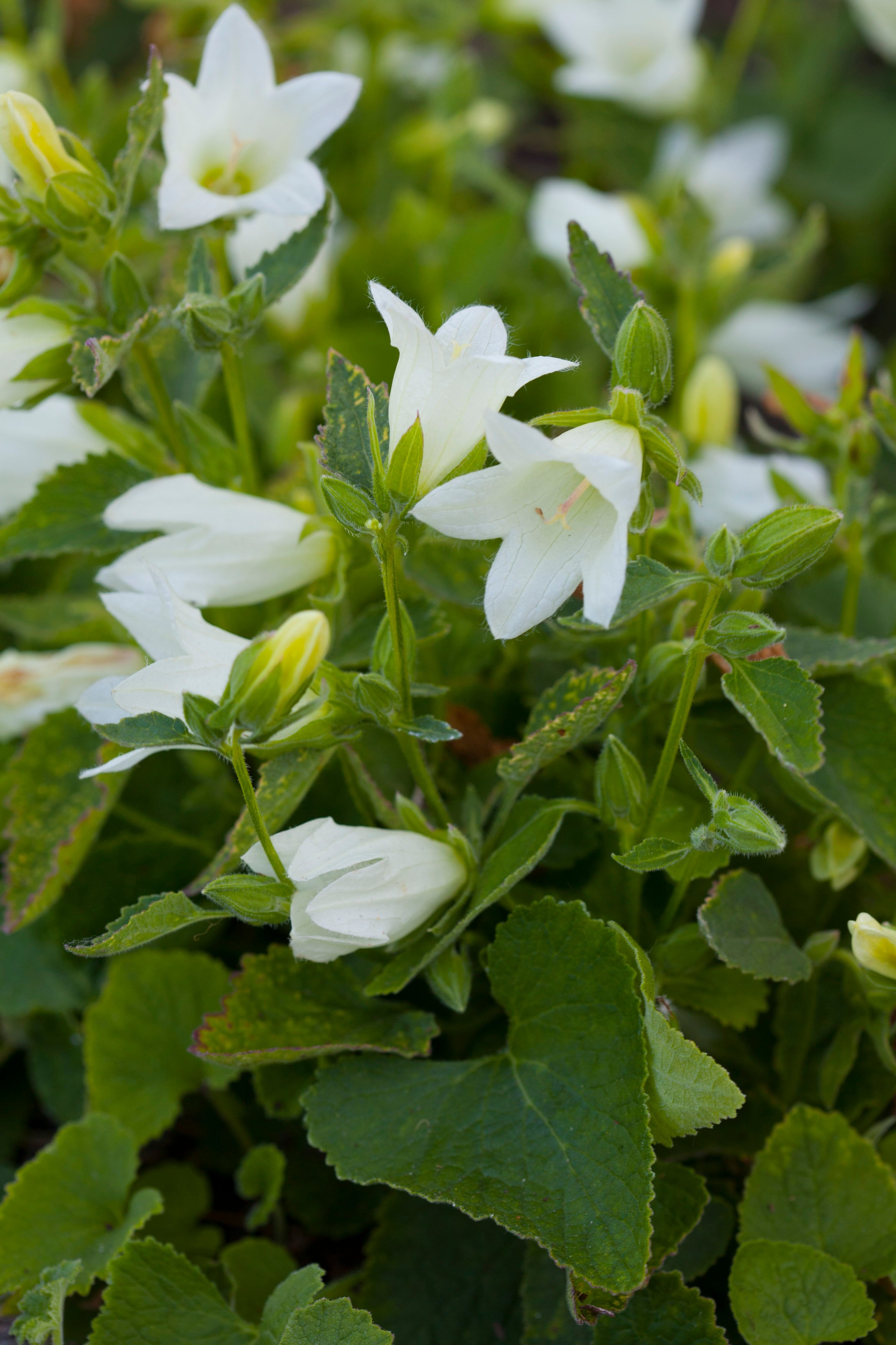 Campanula may be annuals, herbaceous or evergreen perennials, with bell or star-shaped, often blue, flowers in late spring or summer