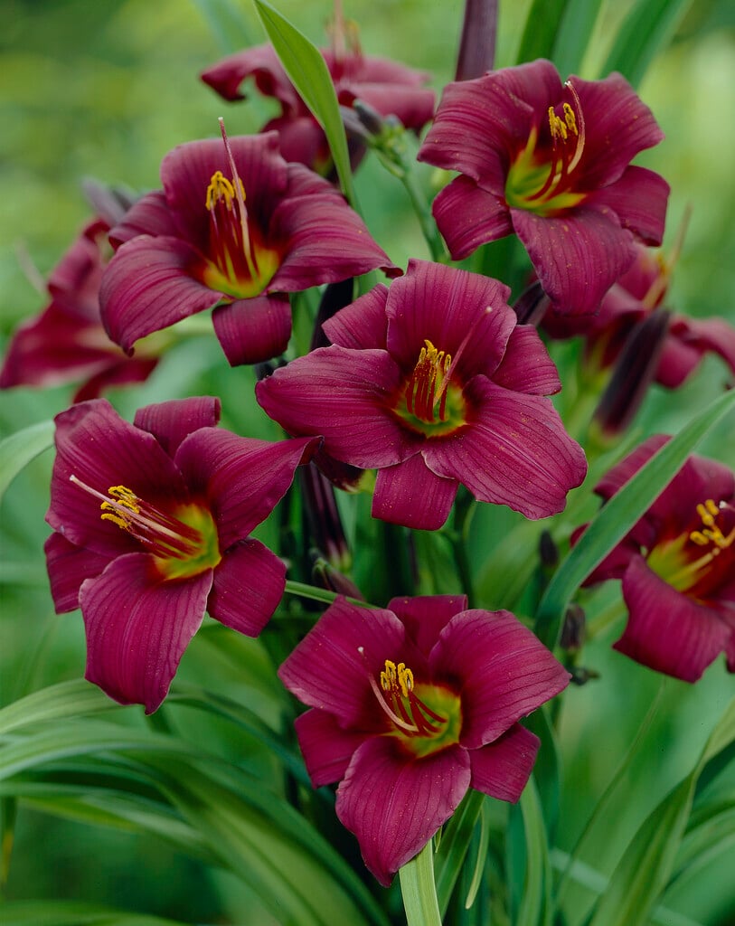 Hemerocallis may be evergreen or herbaceous perennials, with narrow, strap-shaped leaves and funnel-shaped flowers on erect stems in late spring or early summer