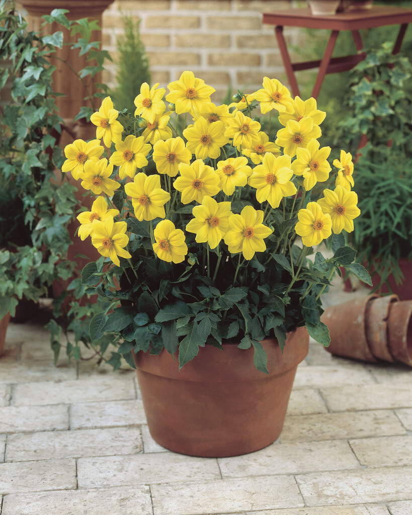 - Single-flowered dahlias have flowerheads usually less than 10cm across, with one or two rows of spreading ray florets, surrounding a central boss of small tubular disc florets which are valuable for bees and butterflies