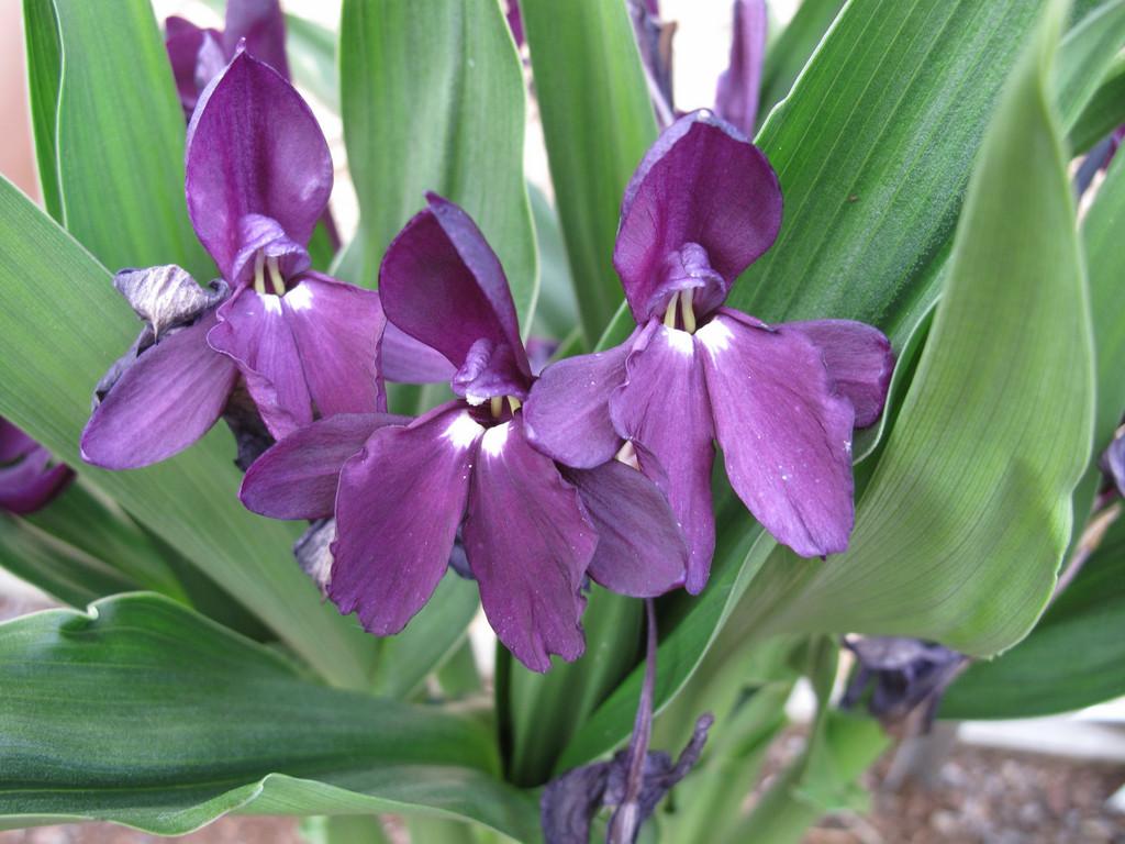 'Harvington Royale' is a tuberous perennial, growing to about 25cm tall, with fairly broad, upright, yellow-green, stem-clasping leaves. The dark purple flower appear in summer in terminal clusters
