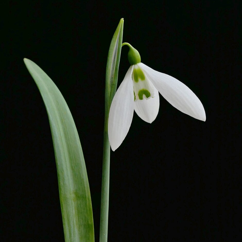 Galanthus are dwarf bulbous perennials with linear or strap-shaped leaves, and solitary, often honey-scented, nodding flowers with 3 white outer tepals and 3 smaller inner ones often marked with green