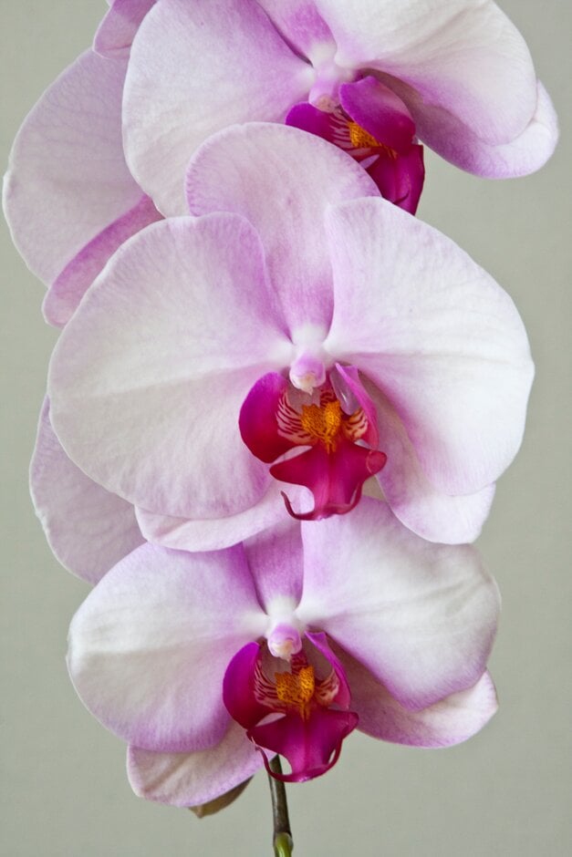 Phalaenopsis are a large genus of species and hybrid mainly epiphytic orchids. Short, upward growing, stem-like rhizomes with no pseudobulbs produce oval, fleshy mid to dark green leaves and flowers in branched racemes from the base of the leaves