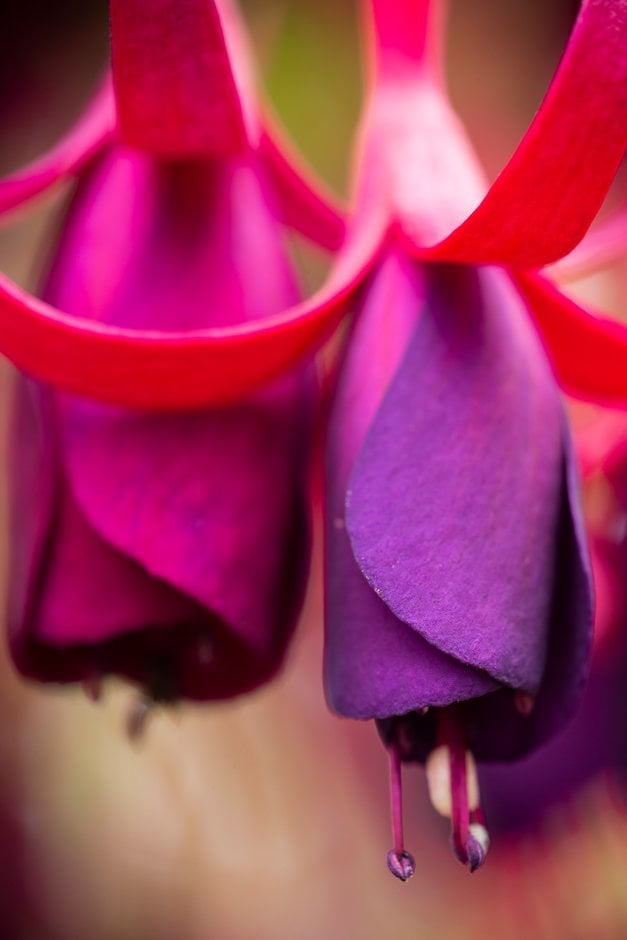 Fuchsia can be deciduous or evergreen shrubs or trees, rarely perennials, with opposite or whorled leaves and usually pendent flowers with conspicuous tubular calyx, 4 spreading sepals and 4 erect petals