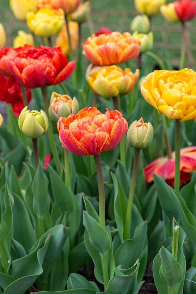 - Double Late Group tulips flower in late spring, with large, fully double flowers, sometimes with a margin of a different colour