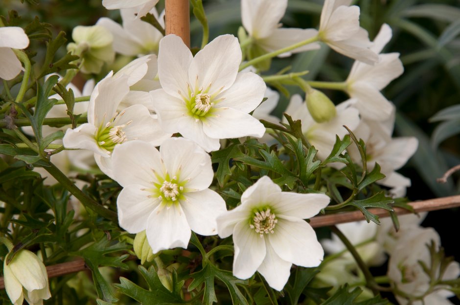 - Forsteri Group clematis are dwarf spreading or prostrate evergreen shrubs, usually dioecious, with deeply cut, trifoliate leaves and small cream or white, sometimes fragrant, flowers