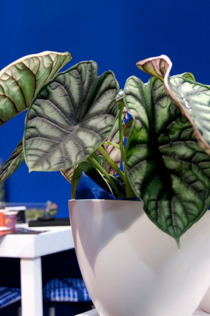 Alocasia are robust evergreen rhizomatous or tuberous perennials with large, usually peltate, leaves with conspicuous veins; insignificant flowering spathes may be followed by orange-red fruits