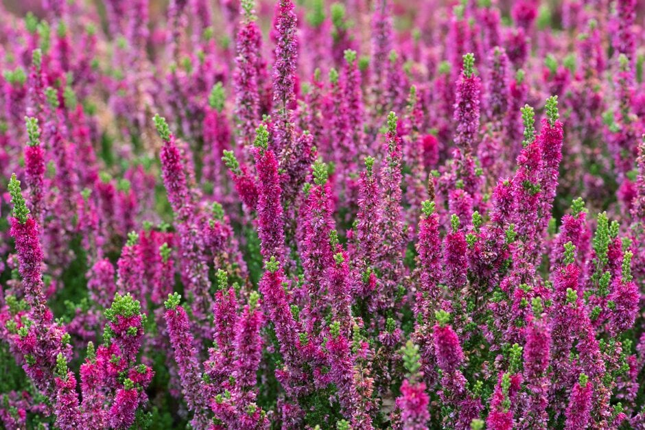 Calluna are low-growing or dwarf evergreen shrubs with stems clothed in tiny overlapping leaves, and terminal, spike-like racemes of small, 4-petalled flowers with coloured calyces