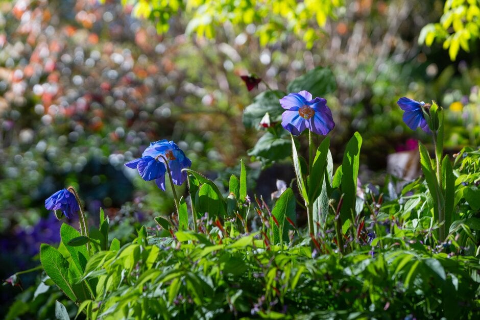 Meconopsis can be annuals, biennials, evergreen or herbaceous perennials, often monocarpic, with rosettes of hairy leaves and bowl-shaped flowers that may be solitary on a leafless stem, or in racemes or panicles on a leafy stem