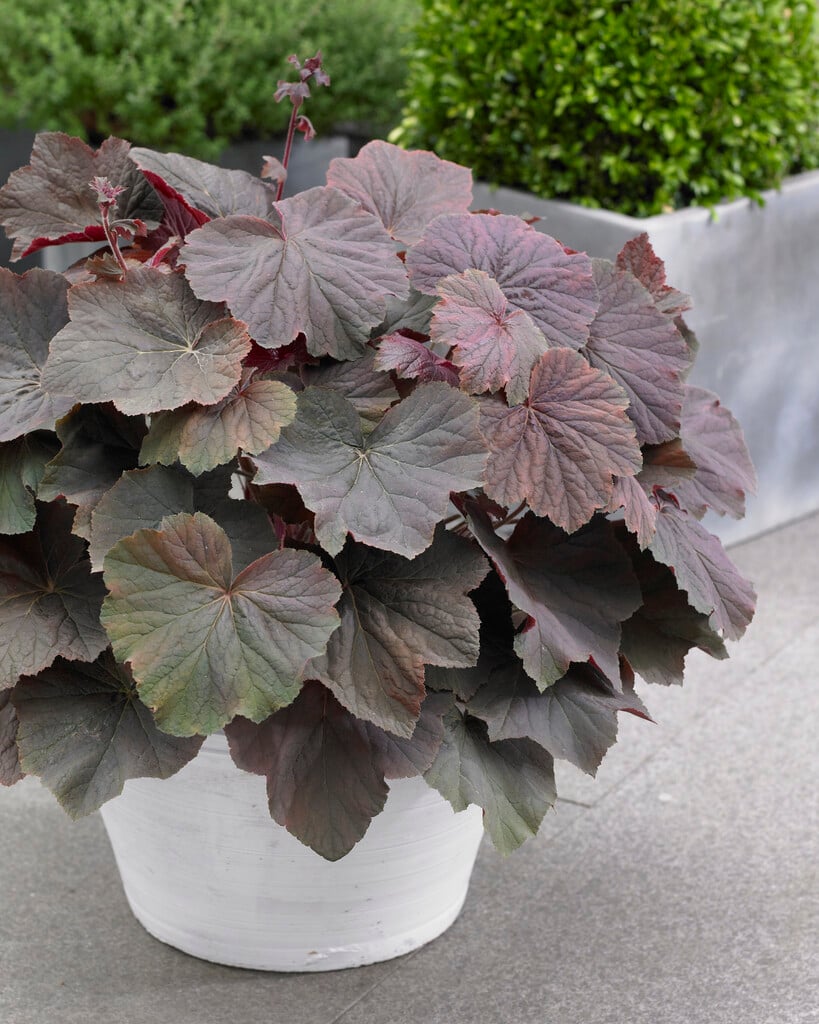 Heuchera are more or less evergreen, clump-forming perennials with attractive, rounded, shallowly palmately lobed leaves and racemes or panicles of small, tubular flowers, often with colourful calyces