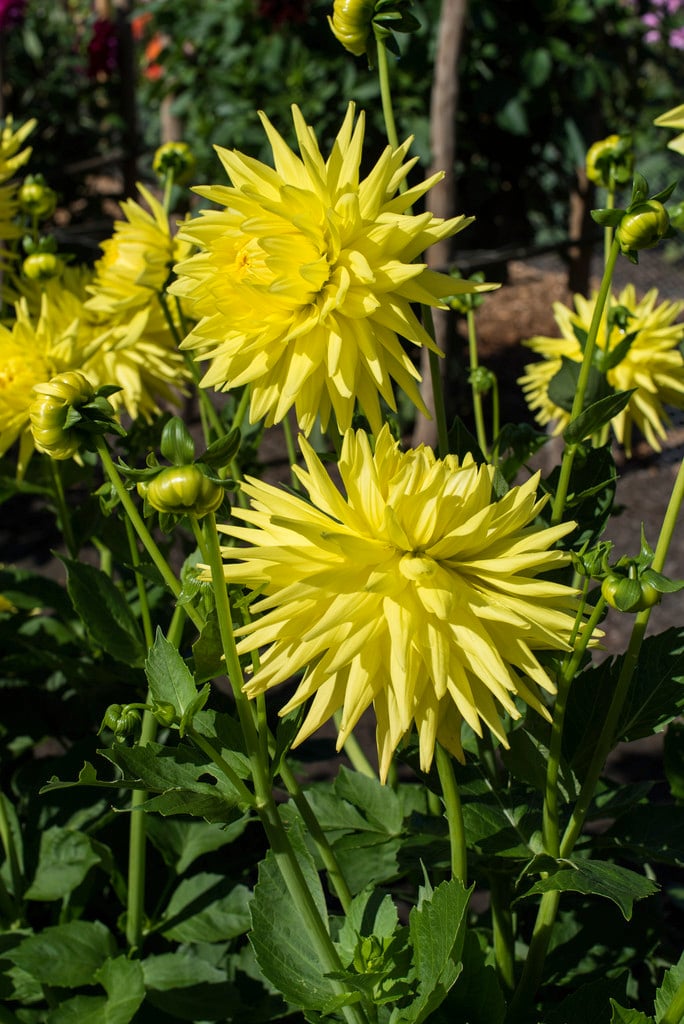 Grow in fertile, humus-rich, well-drained soil enriched with organic matter, in full sun. Pinch out growing tips to encourage bushy plants and stake - see staking perennials. Water if needed in dry periods. Lift and store tubers in autumn to replant, or use as a source of cuttings, in spring. See dahlia cultivation and our video How to plant dahlia tubers and care tips