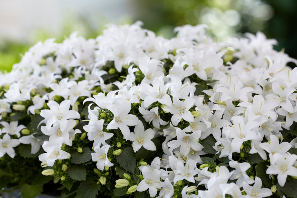 Campanula may be annuals, herbaceous or evergreen perennials, with bell or star-shaped, often blue, flowers in late spring or summer