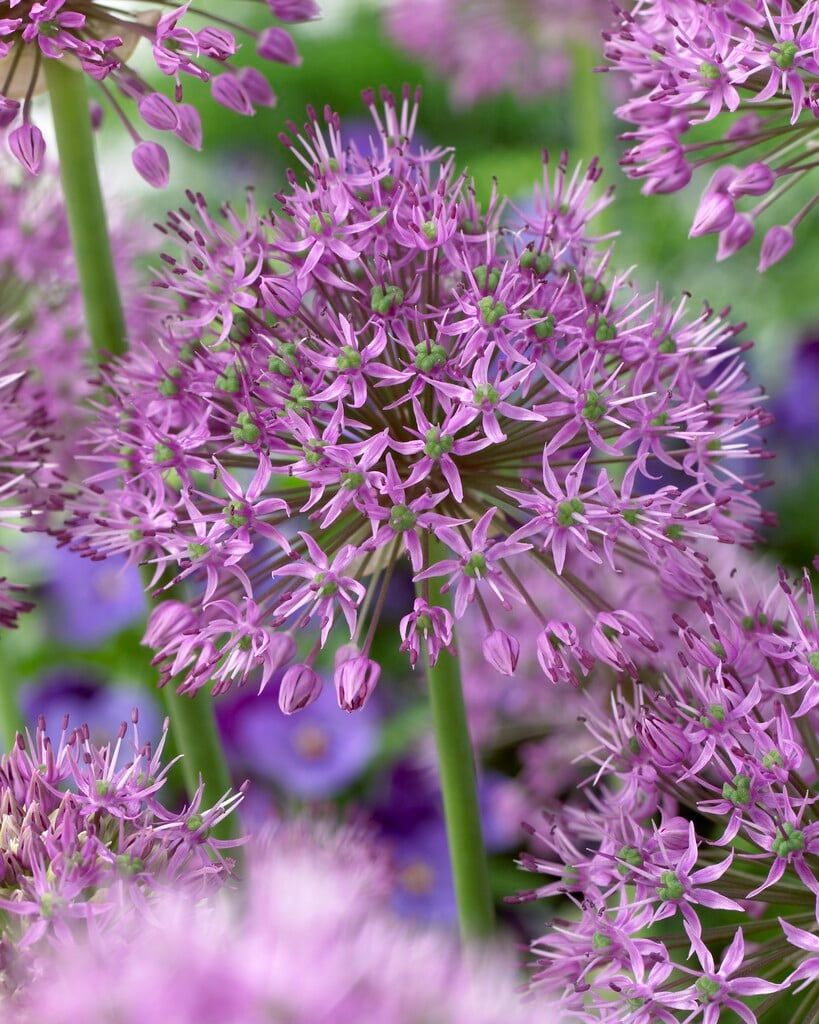 Allium are bulbous herbaceous perennials with a strong onion or garlic scent, linear, strap-shaped or cylindrical basal leaves and star-shaped or bell-shaped flowers in an umbel on a leafless stem