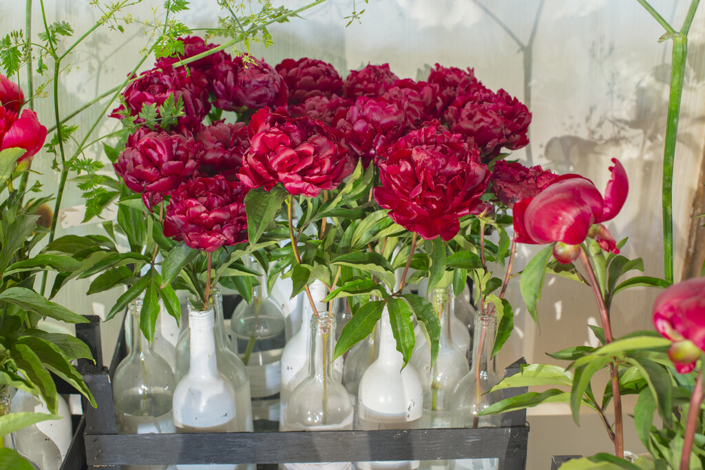 Paeonia may be herbaceous perennials or deciduous sub-shrubs with large, divided leaves and showy large bowl-shaped flowers, usually in early summer
