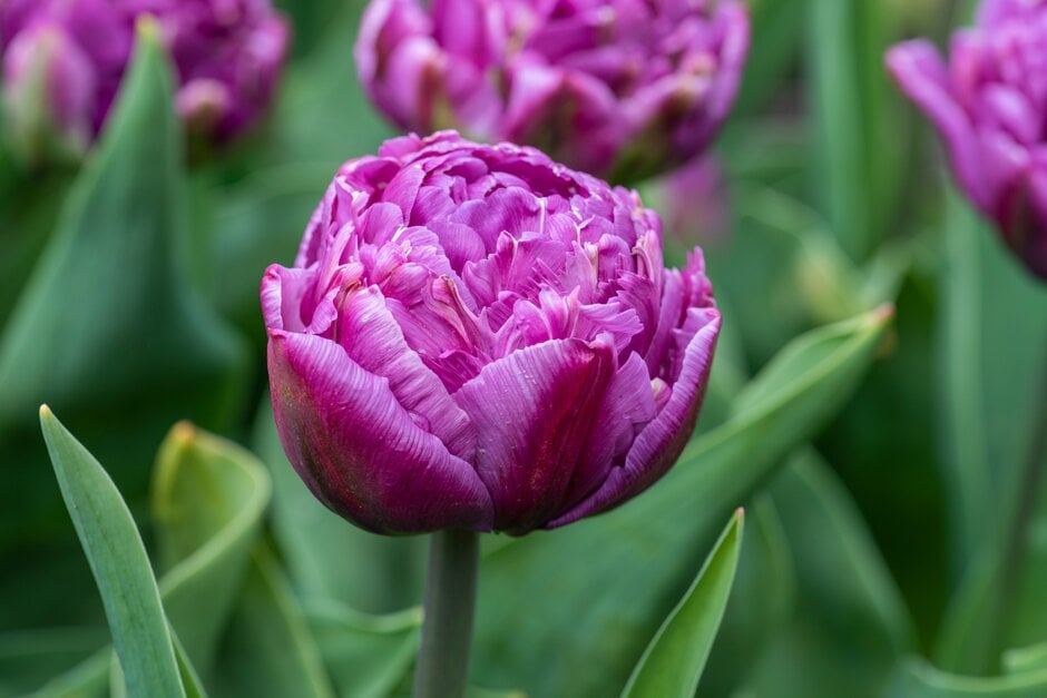 Double Early Group tulips flower in mid-spring, with double, bowl-shaped flowers, sometimes flecked with a contrasting colour