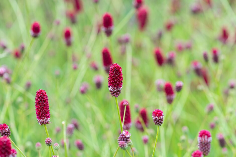 Sanguisorba are rhizomatous herbaceous perennials with attractive, pinnate leaves and branched stems bearing terminal spikes of small fluffy flowers with conspicuous stamens