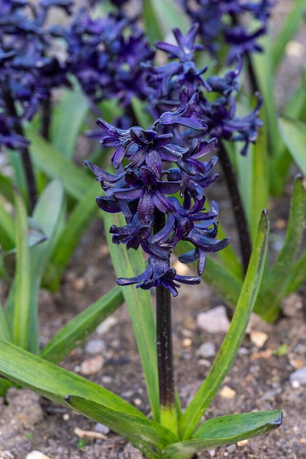 A bulbous perennial with upright, lance-shaped grey-green leaves. Fragrant, upright tubular racemes of star-shaped very dark purple to black flowers appear in the early to mid spring if grown outdoors or around February time if grown indoors