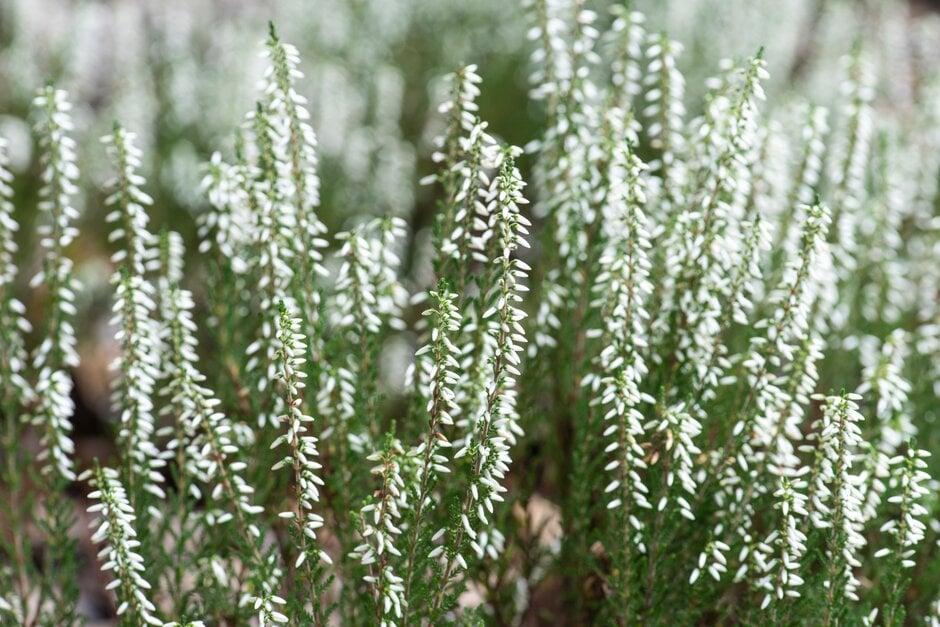 Calluna are low-growing or dwarf evergreen shrubs with stems clothed in tiny overlapping leaves, and terminal, spike-like racemes of small, 4-petalled flowers with coloured calyces