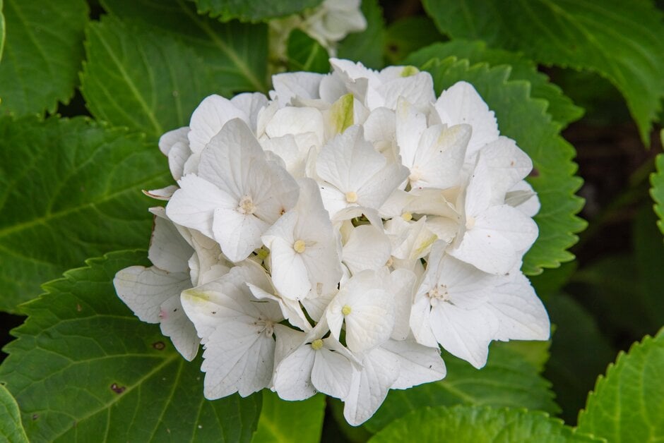 Hydrangea can be deciduous or evergreen shrubs, or self-clinging climbers, with flowers in clusters usually comprising both small fertile and more showy sterile flowers; often good autumn colour