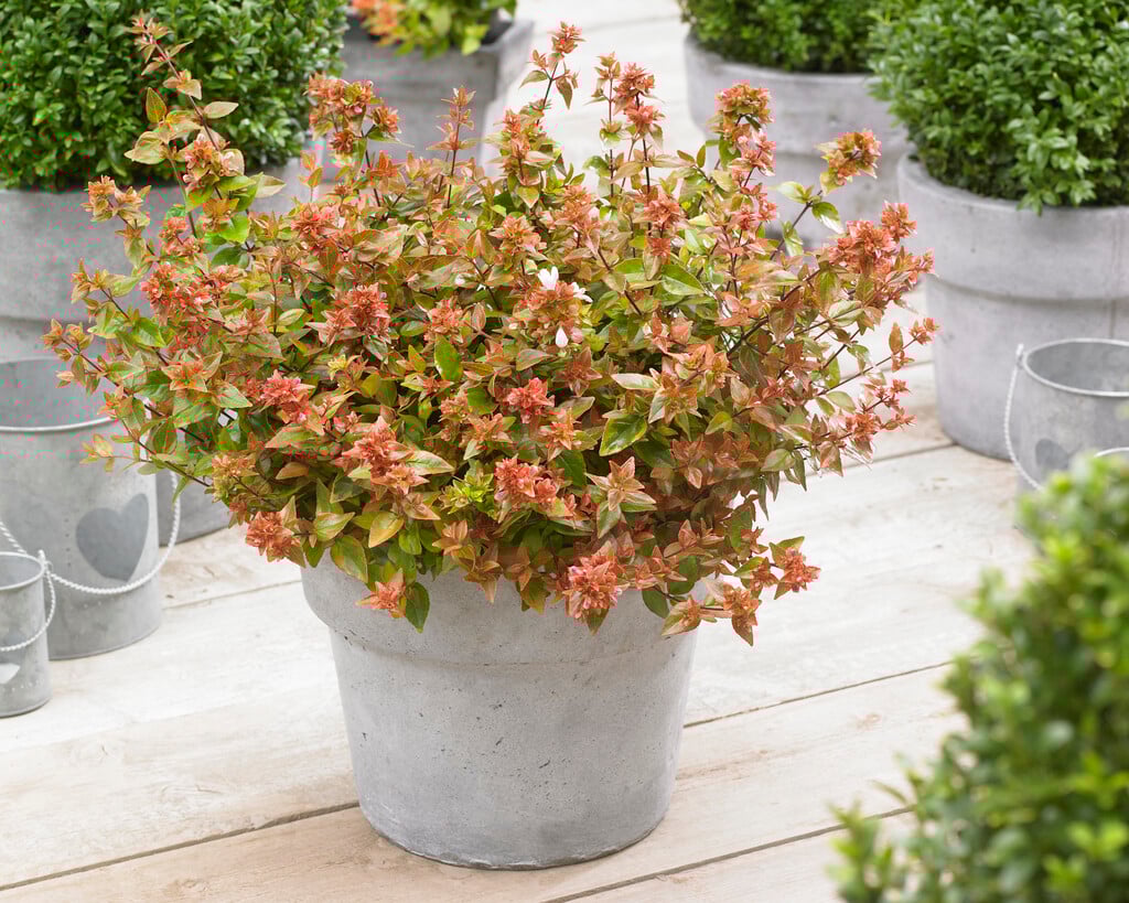 Abelia can be deciduous or evergreen shrubs or small trees, with paired or whorled leaves and axillary or terminal clusters of funnel-shaped or trumpet-shaped flowers in summer and autumn, sometimes with conspicuous, colourful calyces