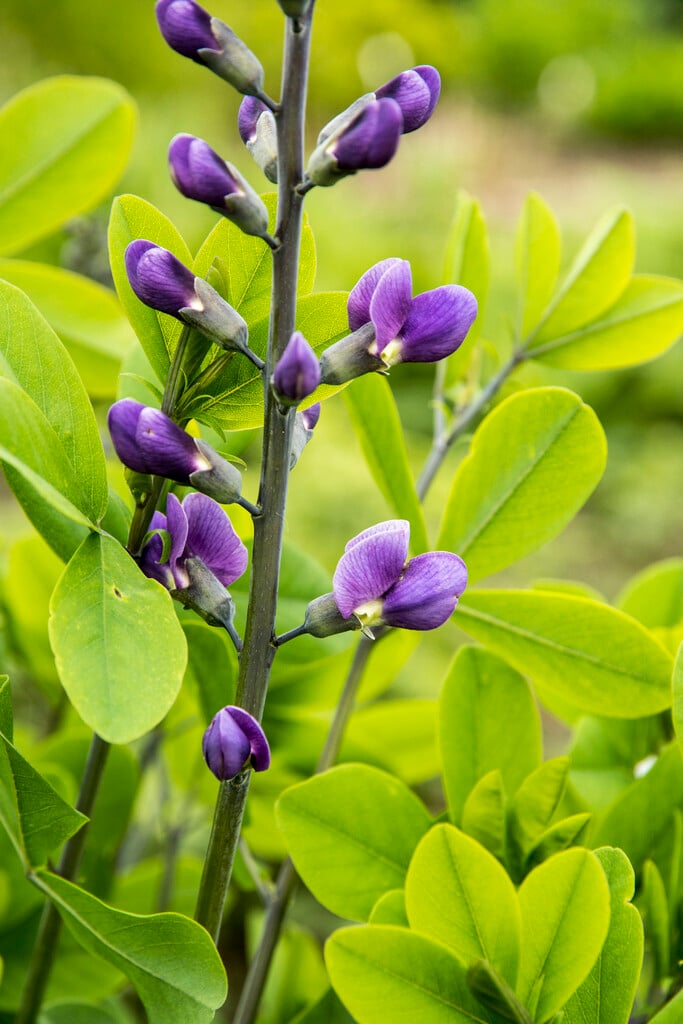 Baptisia are perennials with branched stems bearing three-parted leaves and terminal or axillary racemes of pea flowers, followed by conspicuous inflated pods