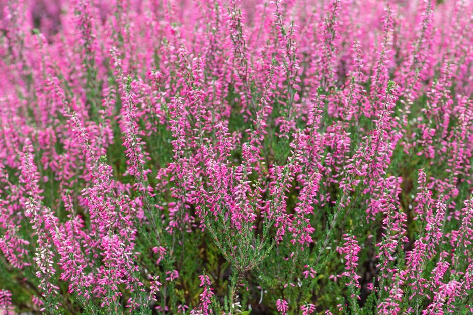 Calluna are low-growing or dwarf evergreen shrubs with stems clothed in tiny overlapping leaves, and terminal, spike-like racemes of small, 4-petalled flowers with coloured calyces
