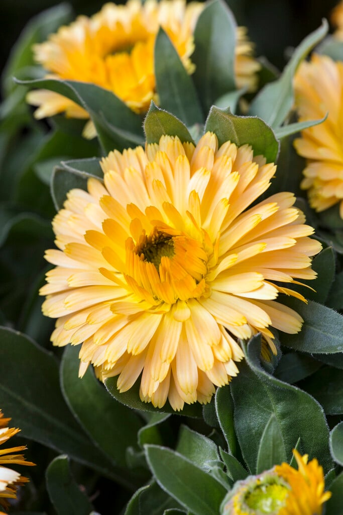 Calendula can be annuals or woody-based perennials, with simple, aromatic leaves and showy, orange or yellow, daisy-like flower-heads in summer and autumn