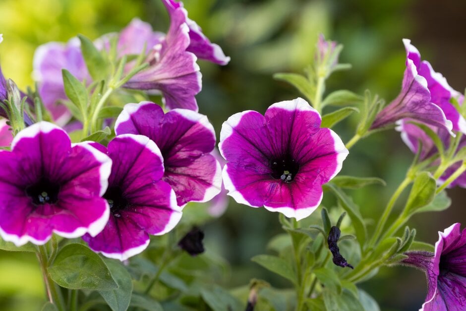 Petunia can be annuals or perennials, with simple leaves and large, solitary, trumpet-shaped flowers in the upper leaf axils from late spring to autumn