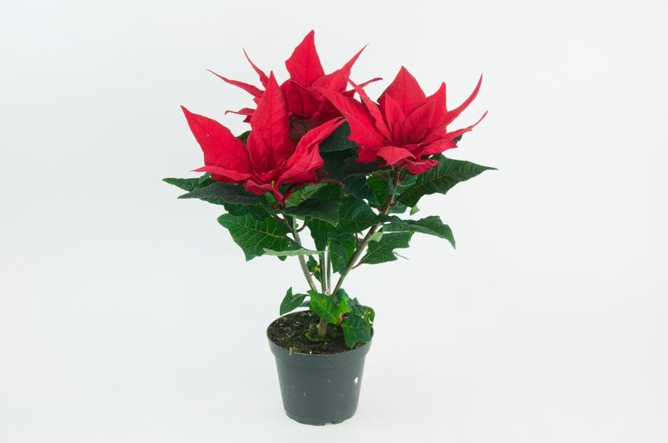 Grow indoors in a peat-free, loam-based potting compost with added bark and leaf mould in full light during winter, avoiding any draughts. Minimum temperature of 13-15°C during the flowering season. Flowering and bract colouring is initiated by short winter day-length, occurring naturally in December and January; from November onwards, plants should be put in a dark room after twelve hours of daylight and protected from artificial light sources. Water sparingly during growth and apply a balanced liquid fertiliser every 10-14 days. See Poinsettia cultivation