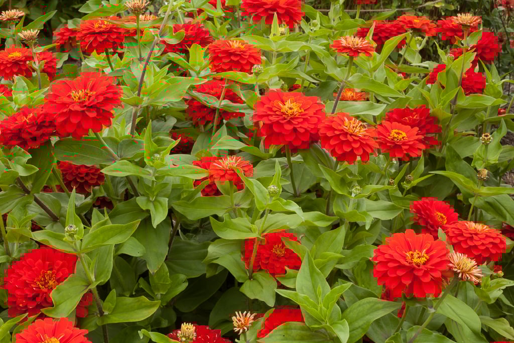 Zinnia can be annuals, perennials or sub-shrubs, with branching stems bearing opposite leaves and solitary terminal flower-heads in summer