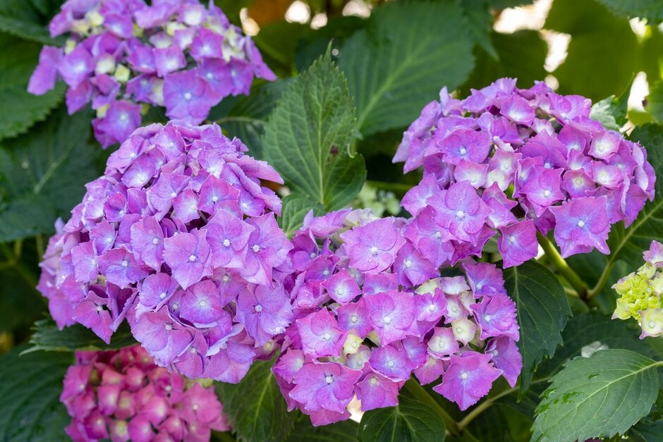 Hydrangea can be deciduous or evergreen shrubs, or self-clinging climbers, with flowers in clusters usually comprising both small fertile and more showy sterile flowers; often good autumn colour