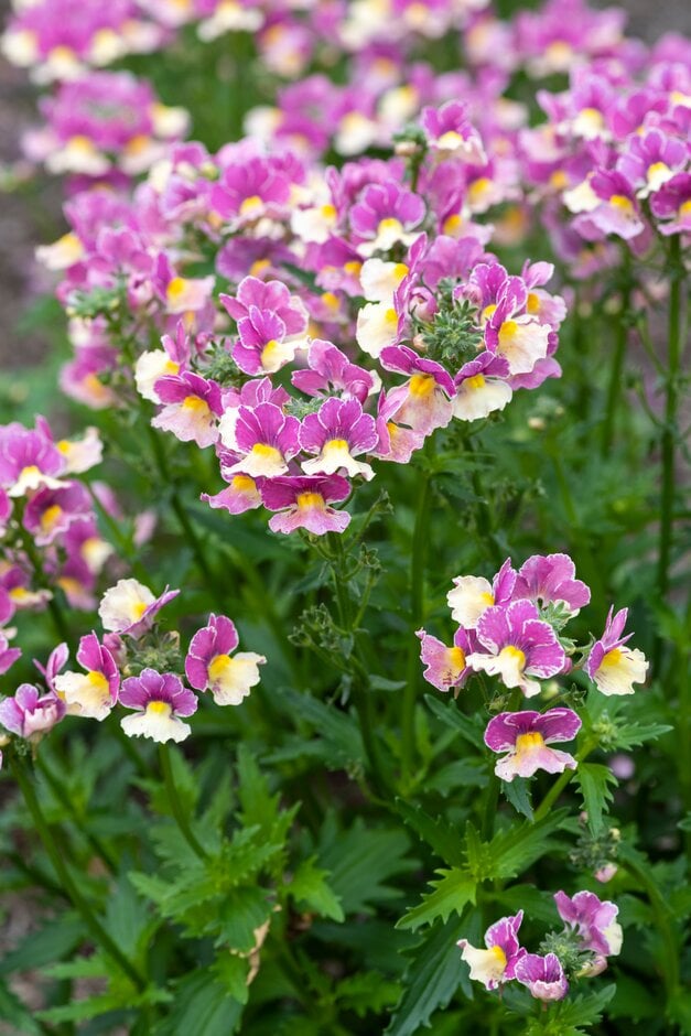 Nemesia can be annuals, perennials or sub-shrubs of bushy habit, with simple, opposite leaves and 2-lipped flowers in short racemes or solitary in the leaf axils
