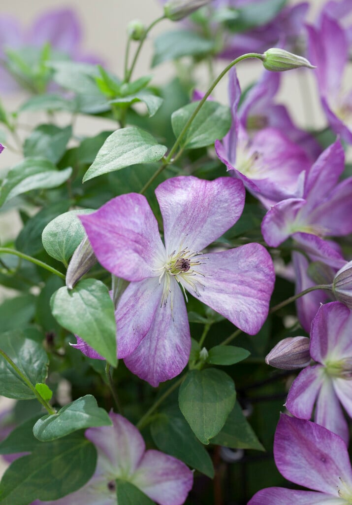 Viticella Group are deciduous climbing shrubs with usually pinnate leaves, and nodding, single to double, open-bell-shaped flowers of small to medium-size, produced on the current year's growth in summer and early autumn