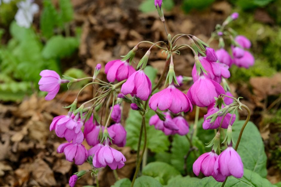 - Cortusoides section primulas are woodland perennials with long-stalked, rounded, lobed and hairy leaves, and usually rosy-pink flowers in a single umbel