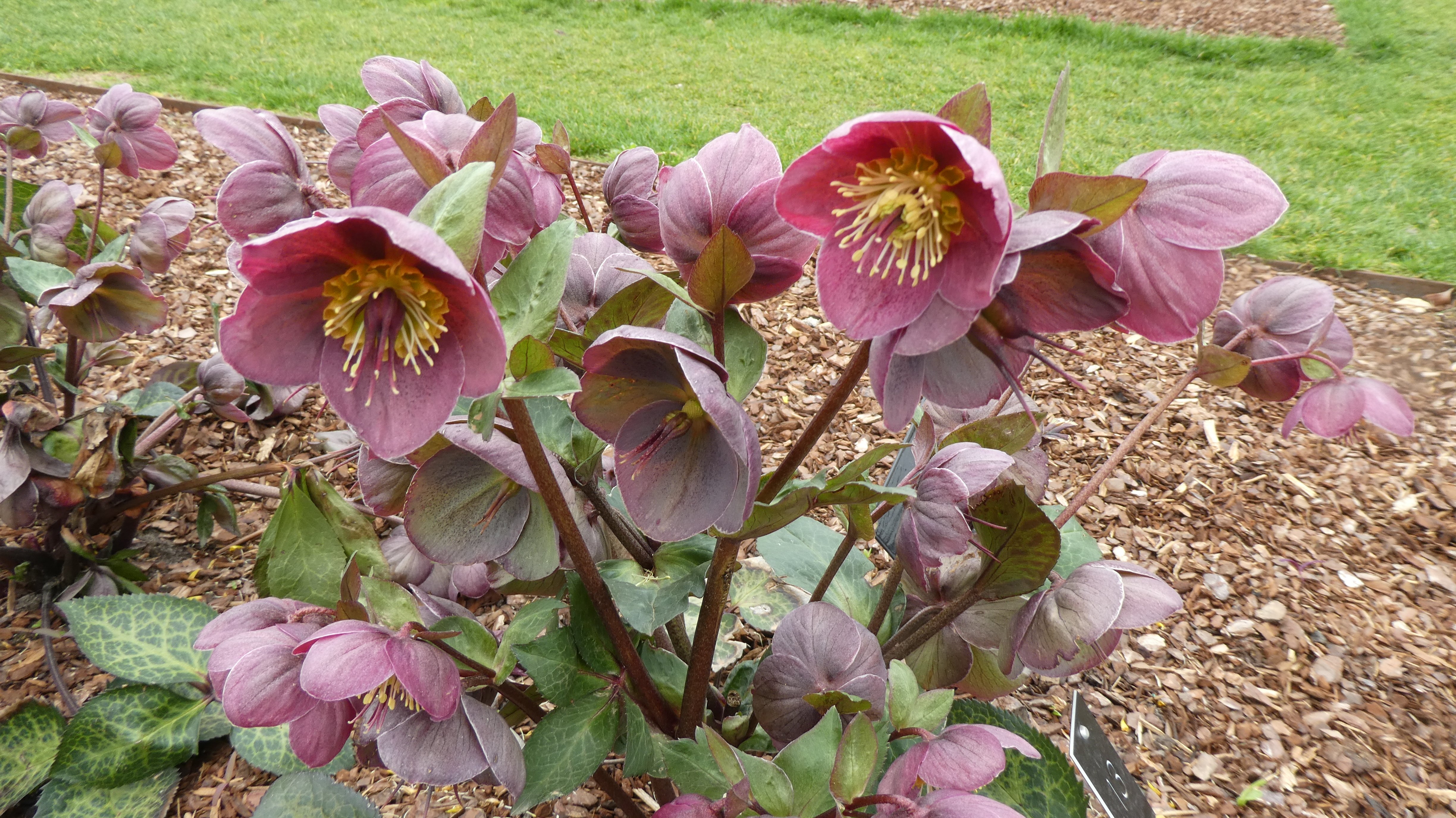 Helleborus can be rhizomatous, herbaceous or semi-evergreen perennials forming a clump of pedate basal leaves, or evergreen with erect, leafy stems. Large, bowl-shaped flowers are borne in loose clusters in late winter or spring