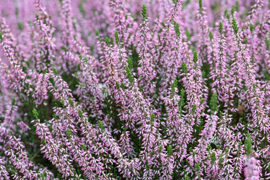 Calluna are low-growing or dwarf evergreen shrubs with stems clothed in tiny overlapping leaves, and terminal, spike-like racemes of small, 4-petalled flowers with coloured calyces