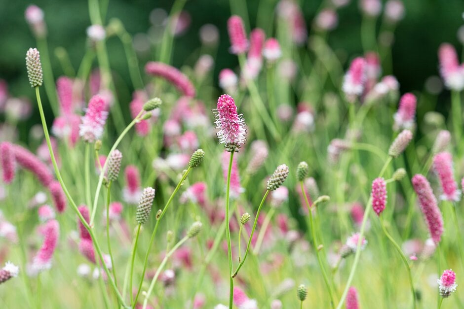 Sanguisorba are rhizomatous herbaceous perennials with attractive, pinnate leaves and branched stems bearing terminal spikes of small fluffy flowers with conspicuous stamens
