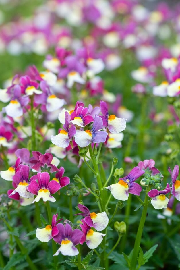 Nemesia can be annuals, perennials or sub-shrubs of bushy habit, with simple, opposite leaves and 2-lipped flowers in short racemes or solitary in the leaf axils