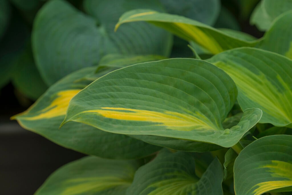 Hosta are clump-forming herbaceous perennials with simple, ovate or lance-shaped leaves, often attractively coloured or variegated, and erect racemes of nodding, funnel or bell-shaped flowers in early summer