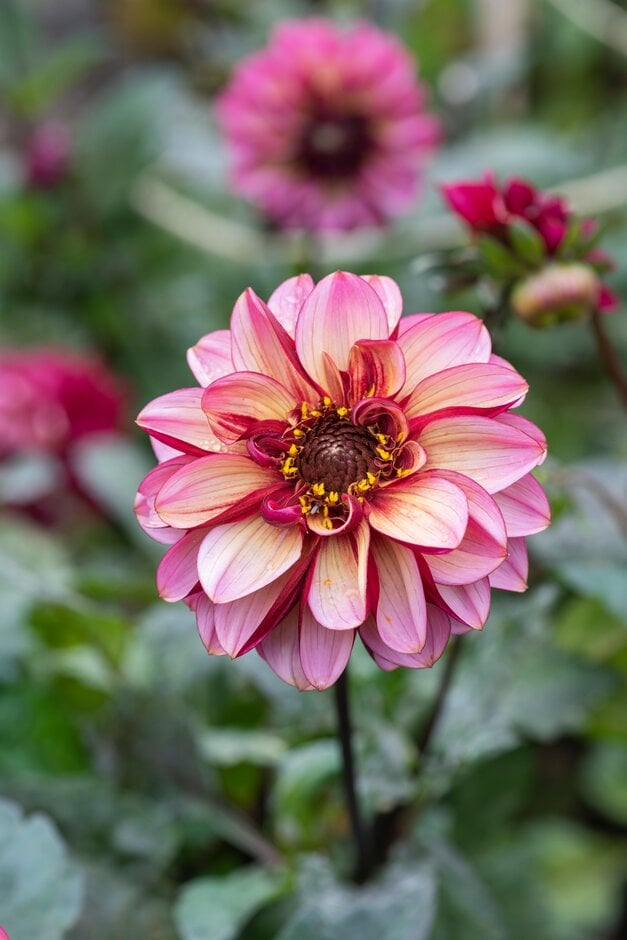 Grow in full sun, in fertile, humus-rich, well-drained soil enriched with organic matter and general-purpose fertiliser. Pinch out growing tips to encourage bushy plants. Water freely in dry periods. Lift and store tubers in autumn to replant, or use as a source of cuttings, in spring. See dahlia cultivation and our video How to plant dahlia tubers and care tips