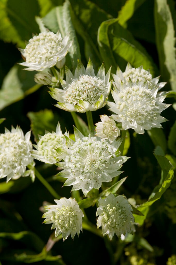 Astrantia are clump-forming herbaceous perennials with palmately lobed basal leaves and branched, erect, wiry stems bearing compact umbels of tiny flowers surrounded by a rosette of showy bracts