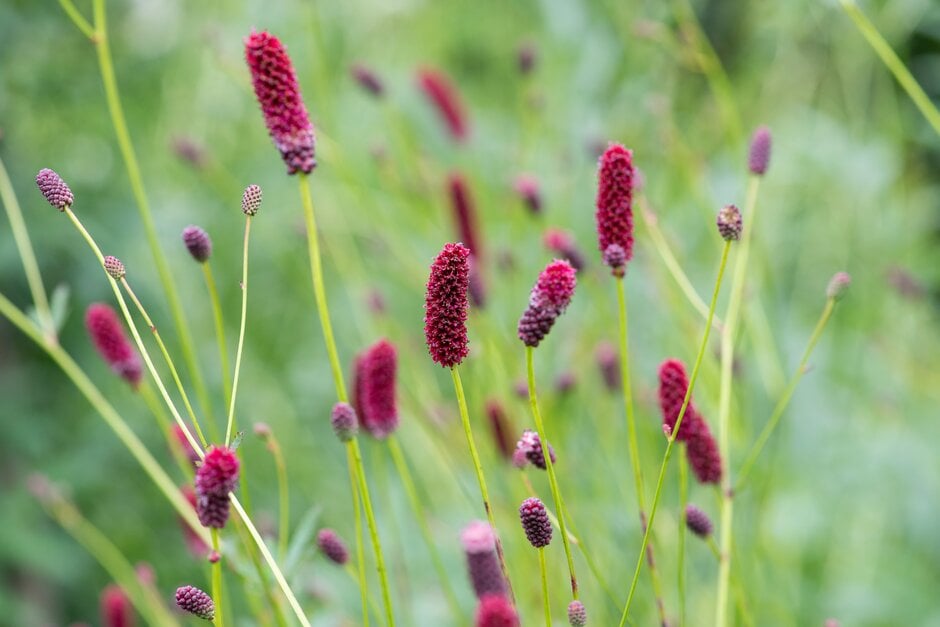 Sanguisorba are rhizomatous herbaceous perennials with attractive, pinnate leaves and branched stems bearing terminal spikes of small fluffy flowers with conspicuous stamens
