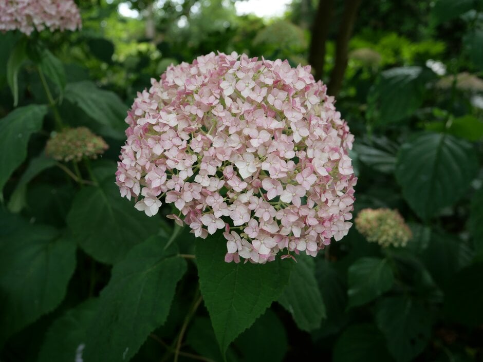 A compact, bushy, deciduous shrub to 80cm high, with a rounded habit and broadly ovate, dark green to bronze leaves with toothed edges. Produces large, domed heads of bubblegum pink flowers (more pink to pale blue on acid soils) on strong stems from July through to September. Suited to pots and containers as well as flower beds and borders
