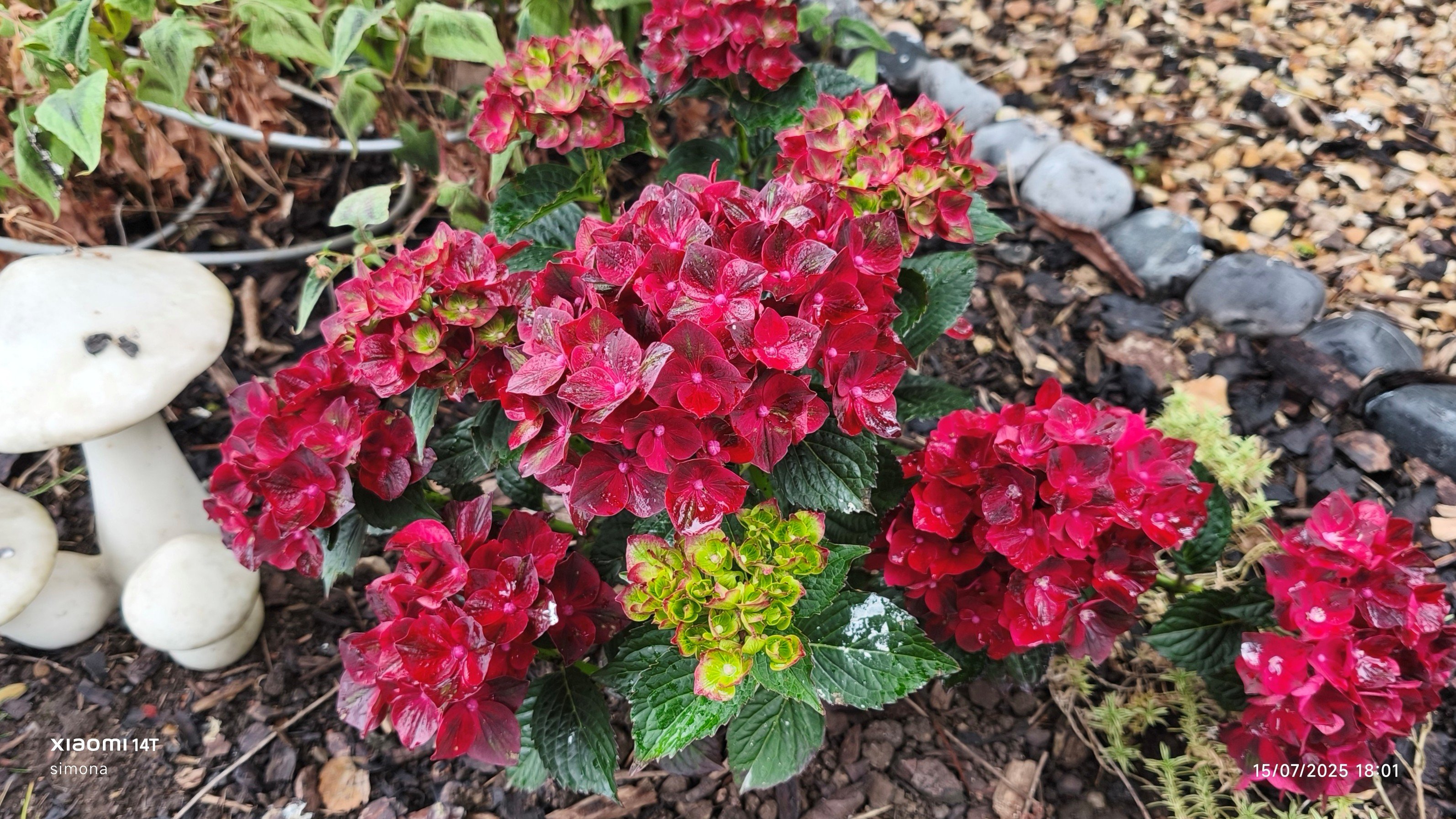 Hydrangea can be deciduous or evergreen shrubs, or self-clinging climbers, with flowers in clusters usually comprising both small fertile and more showy sterile flowers; often good autumn colour