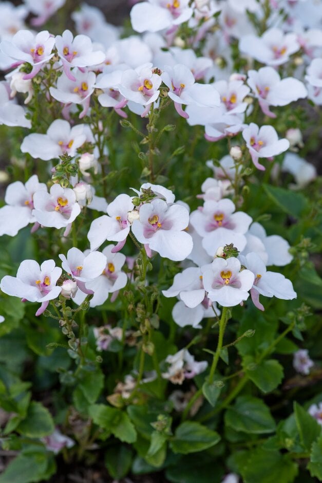 Diascia can be annuals or semi-evergreen perennials, usually making a mat of neat foliage with racemes of cup or bell-shaped flowers, usually in shades of pink, and each with two short spurs