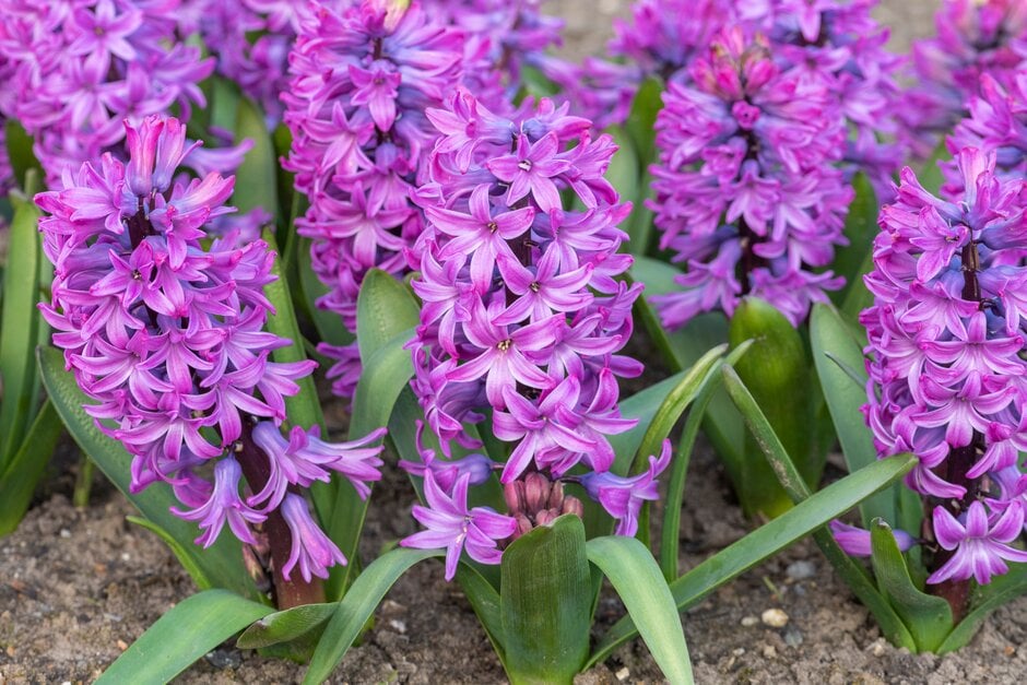 Hyacinthus are bulbous perennial with glossy, broadly strap-shaped leaves and fragrant, bell-shaped flowers with recurved petals, borne in loose or dense racemes in spring
