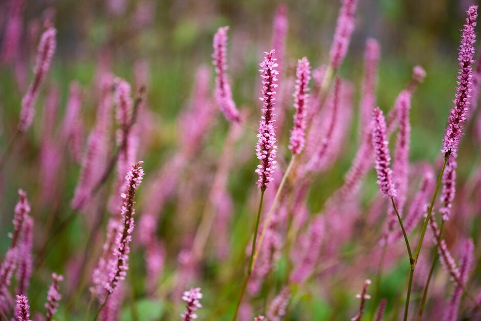 A clump-forming, deciduous perennial to 1.35m with neat, ovate green leaves and narrow, upright spikes of small pale pink flowers which are late flowering, appearing from summer through until the autumn. Suitable for the middle of a flower border