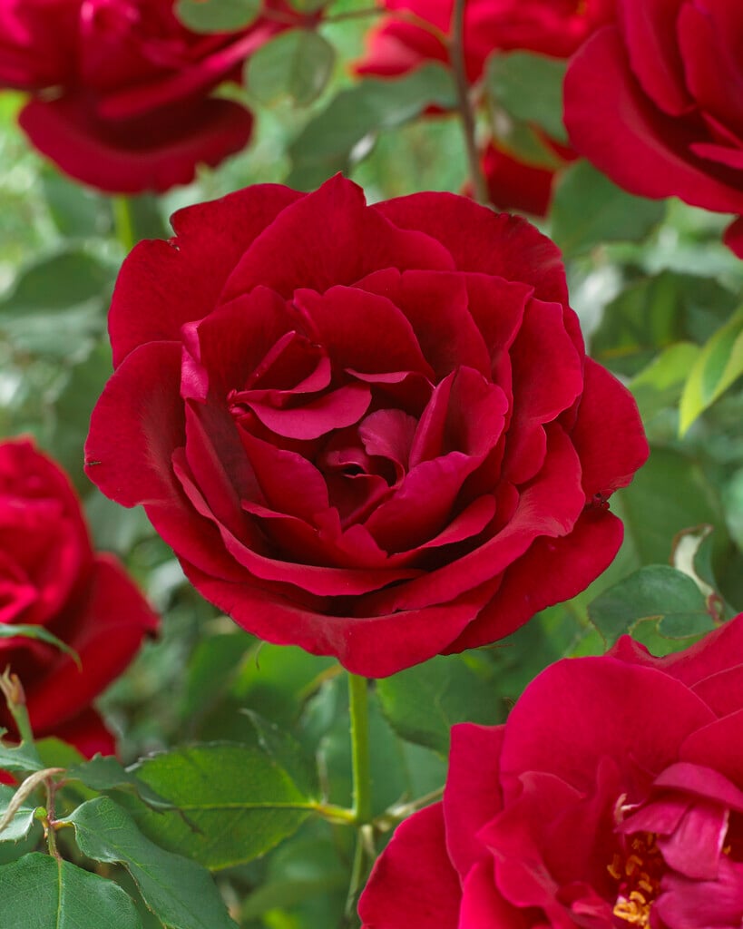 - Hybrid Tea, or Large-flowered bush roses are upright, thorny shrubs with large, usually glossy leaves and large, double often fragrant flowers that may be solitary or in threes
